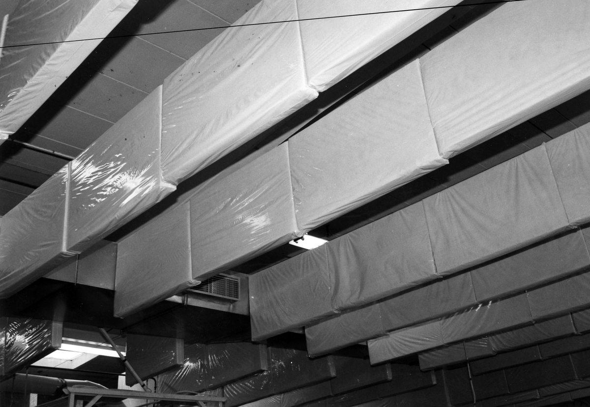 Ljudnivån i konfektyravdelningen dämpas med hjälp av skivor i taket.