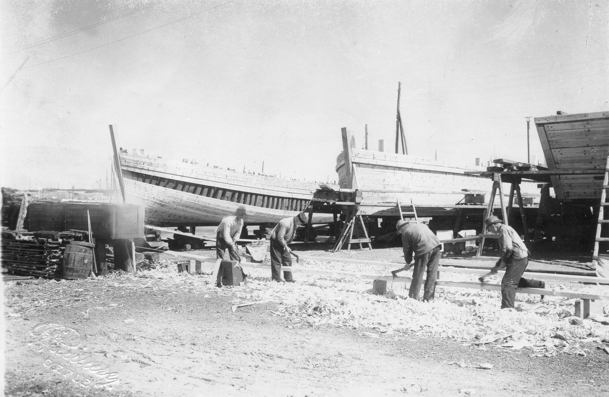 Pråmbyggnad vid Baggarevarvet vid Gävle hamn.