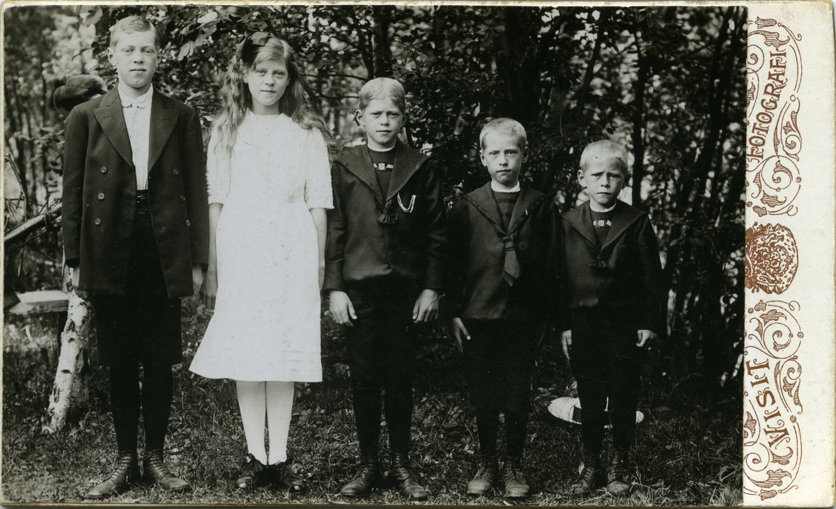 Barnen till trafikchefen August Westerlund och hans hustru Hanna på Jädraås herrgård. Från vänster: Sven Alexander, född den 4 februari 1900, död i Torsås den 28 januari 1986, veterinär. Magnhild AGDA Maria, född den 18 november 1901, död den 17 oktober 1994 i Gävle, sjukgymnast, ogift. EDWARD August, född den 17 juni 1903, död den 26 september 1996 i Hjo, civilingenjör. ADOLF Wilhelm, född den 15 oktober 1907, död den 19 januari 2003 i Västra Frölunda, läroverksadjunkt.