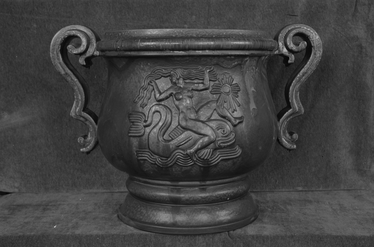 Trädgårdsurna, tillverkad 1928 av Gefle Porslinsfabrik, formgivare Arthur Percy.