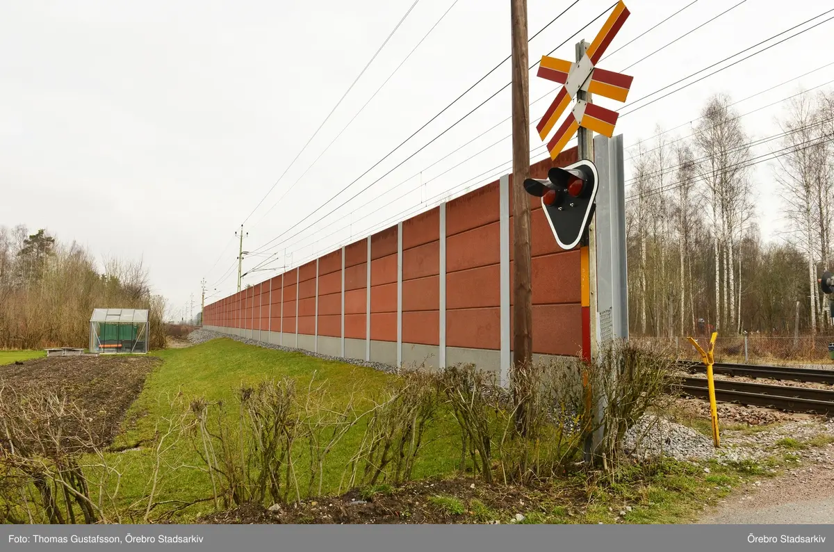 Bullerplank och järnvägsövergång, Vittvångsvägen, 2016-04-05