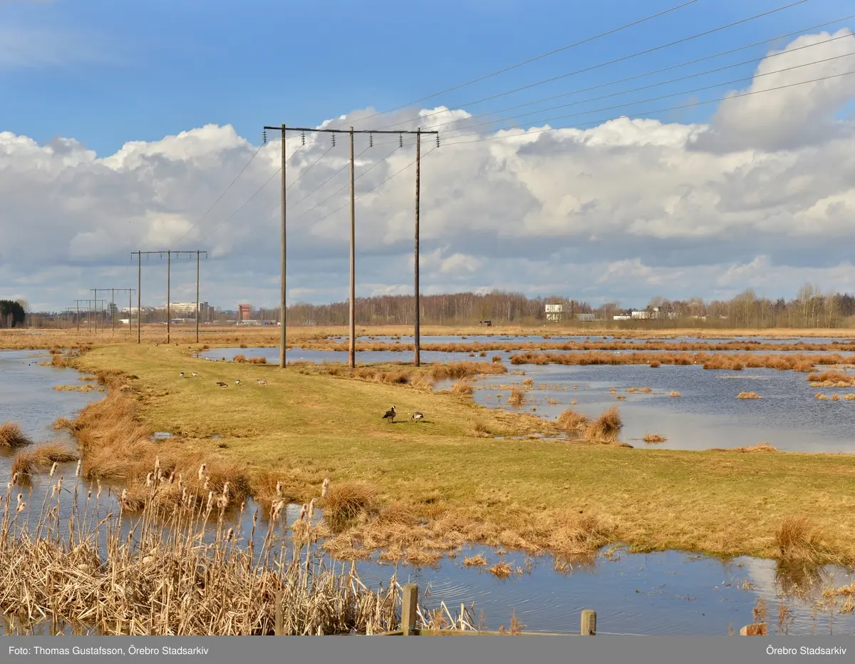 Luftledningar och kanadagäss vid Näsbyängarna, 2016-03-29