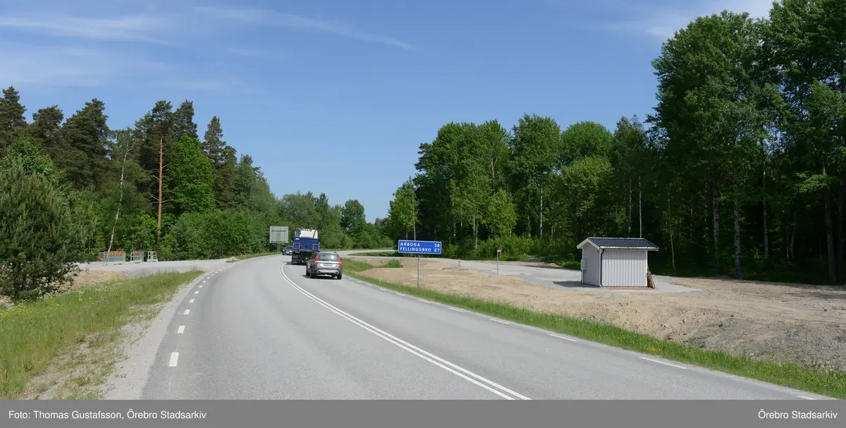Vägskylt och biltrafik på Glanshammarsvägen vid Hjortstorp, 2016-06-02