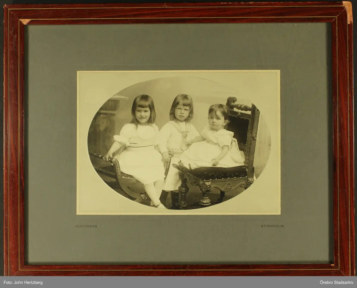 Barnen Anna, Johan och Carl hos fotografen, 1870-tal