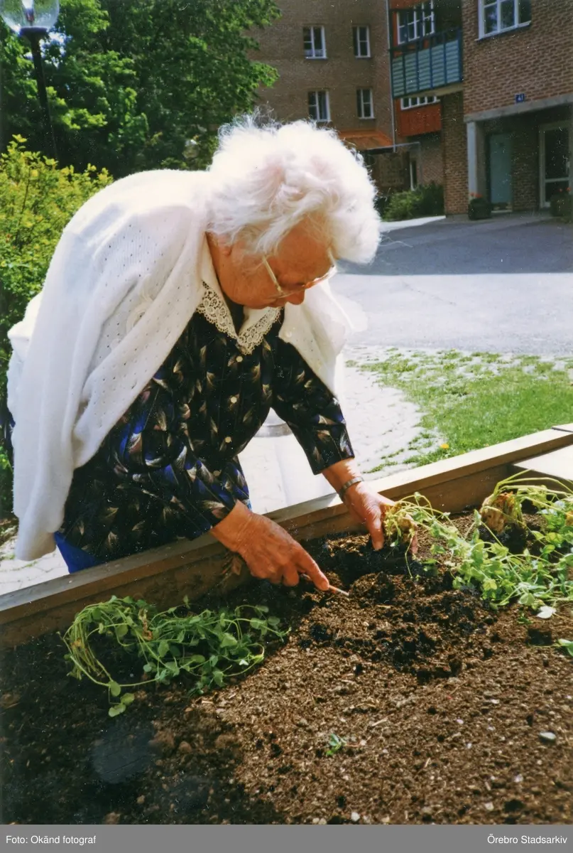 Maria rensar i odlingslådan, 1991