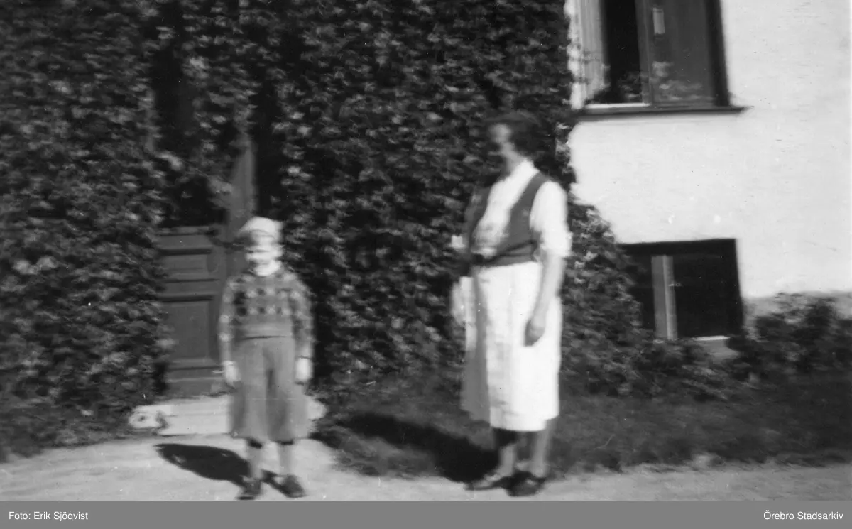 Kvinna och barn utanför Längbrohemmet, 1930-tal