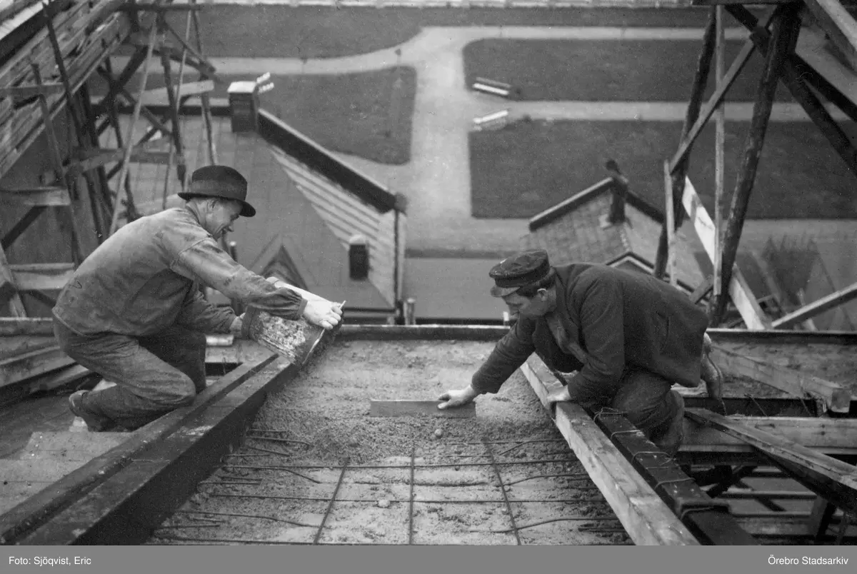 Byggarbetare på taken av Oscariahuset, 1910-tal