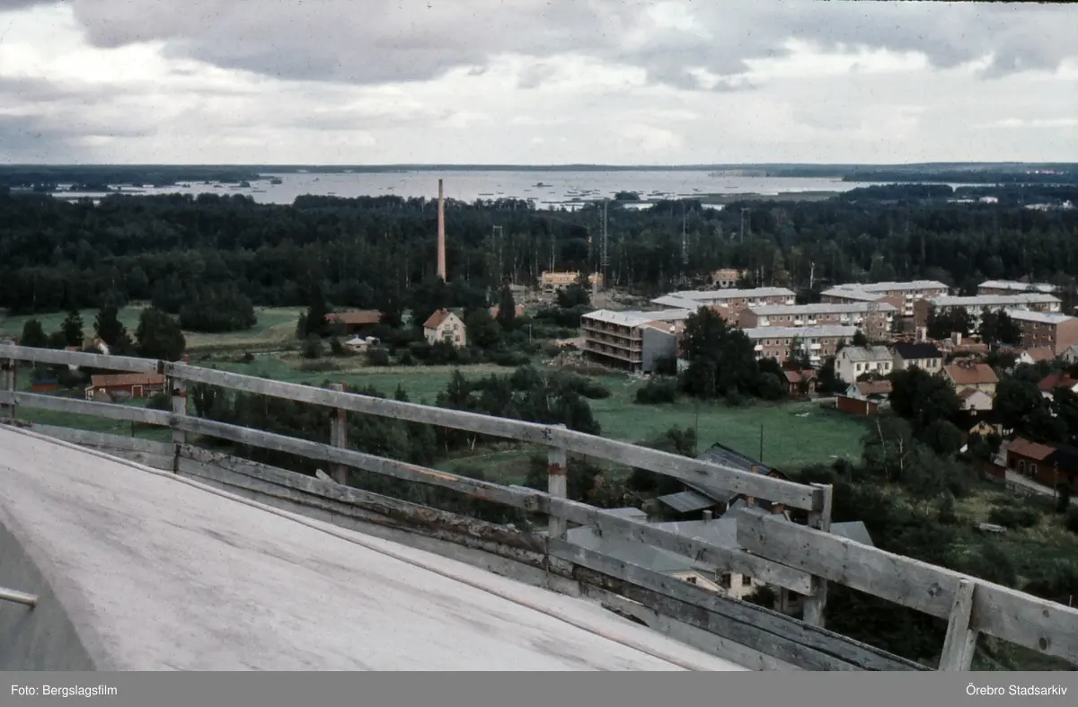 Utsikt över Norrby och Hjälmaren från vattentornet Svampen, 1957