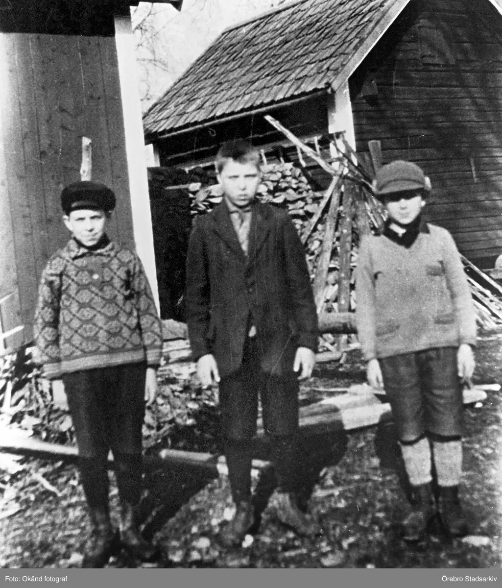 Pojkar vid vedhög i Minneslust i Hovsta, 1930-tal