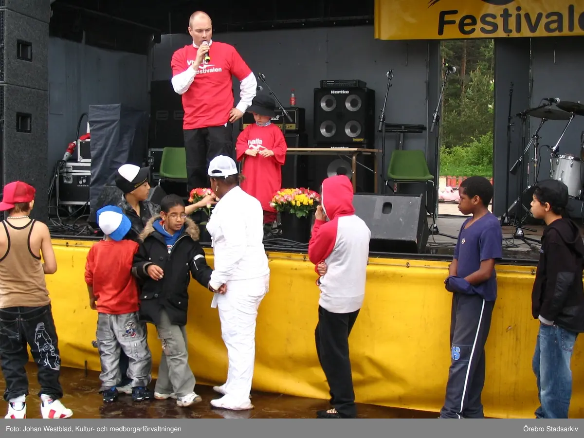 Konferencier talar på Vivallafestivalen, 2005-05-28