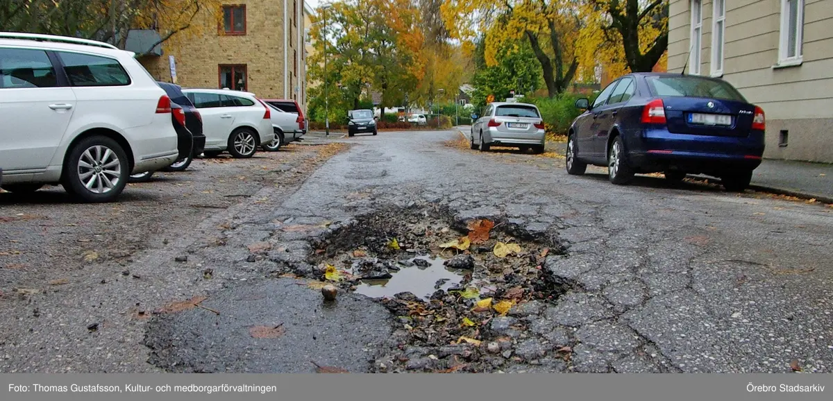 Potthål i gatan vid Venavägen 21, 2010-10-26