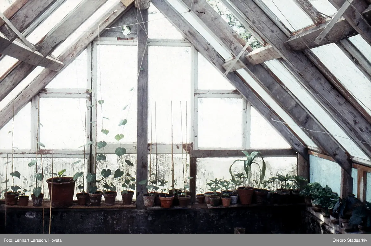 Inne i växthuset på Björkhagen i Yxtabacken i Hovsta, 1960-tal