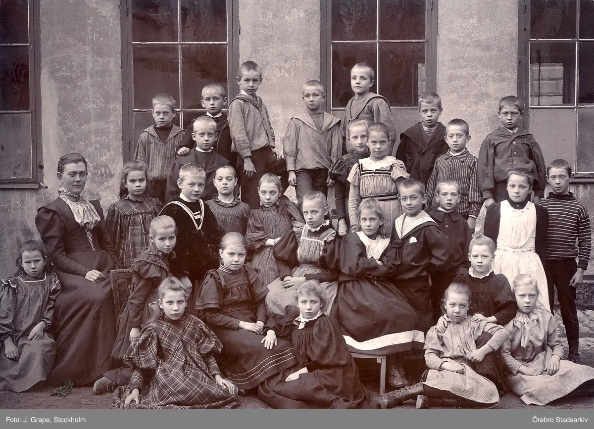 Skolklass utanför skola, 1890-tal