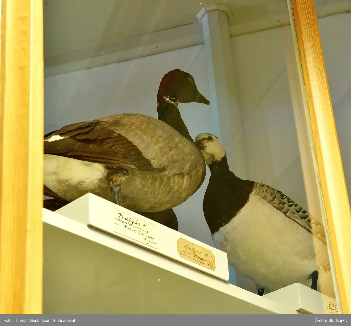 Prutgås och vitkindad gås på Biologiska museet, 2014-04-28
