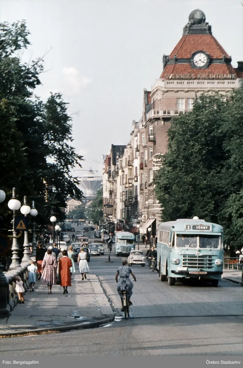 Buss i trafik över Storbron, 1957