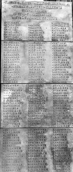 437 finska släktnamn i mellersta Sveriges och Norges finnmarker ingraverade på minnessten vid sjön Röjden.