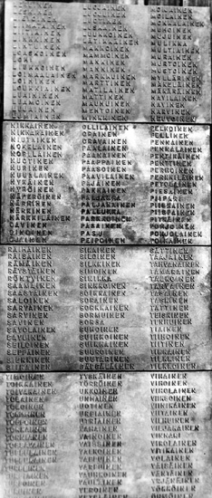437 finska släktnamn i mellersta Sveriges och Norges finnmarker ingraverade på minnessten vid sjön Röjden.