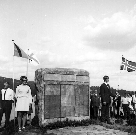 Avtäckning av det finska invandrarmonumentet vid sjön Röjden. 12 plattor skänkta från Finland innehållande 442 finska släktnamn från hela mellan-skandinaviska finnområdet.