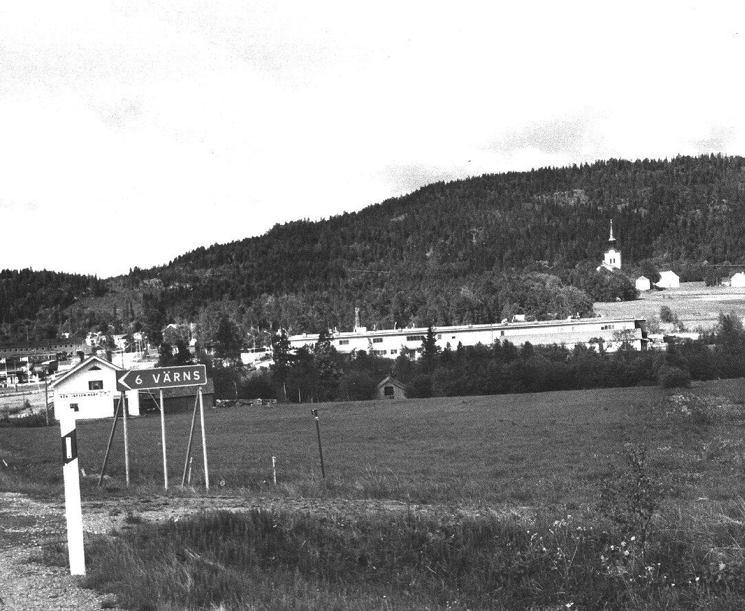Vy över Docksta med Vibyggerå kyrka i bakgrunden.
