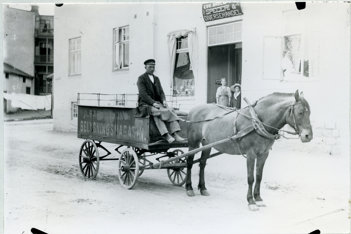 Fotogenåkare med häst och vagn. C:a 1900.