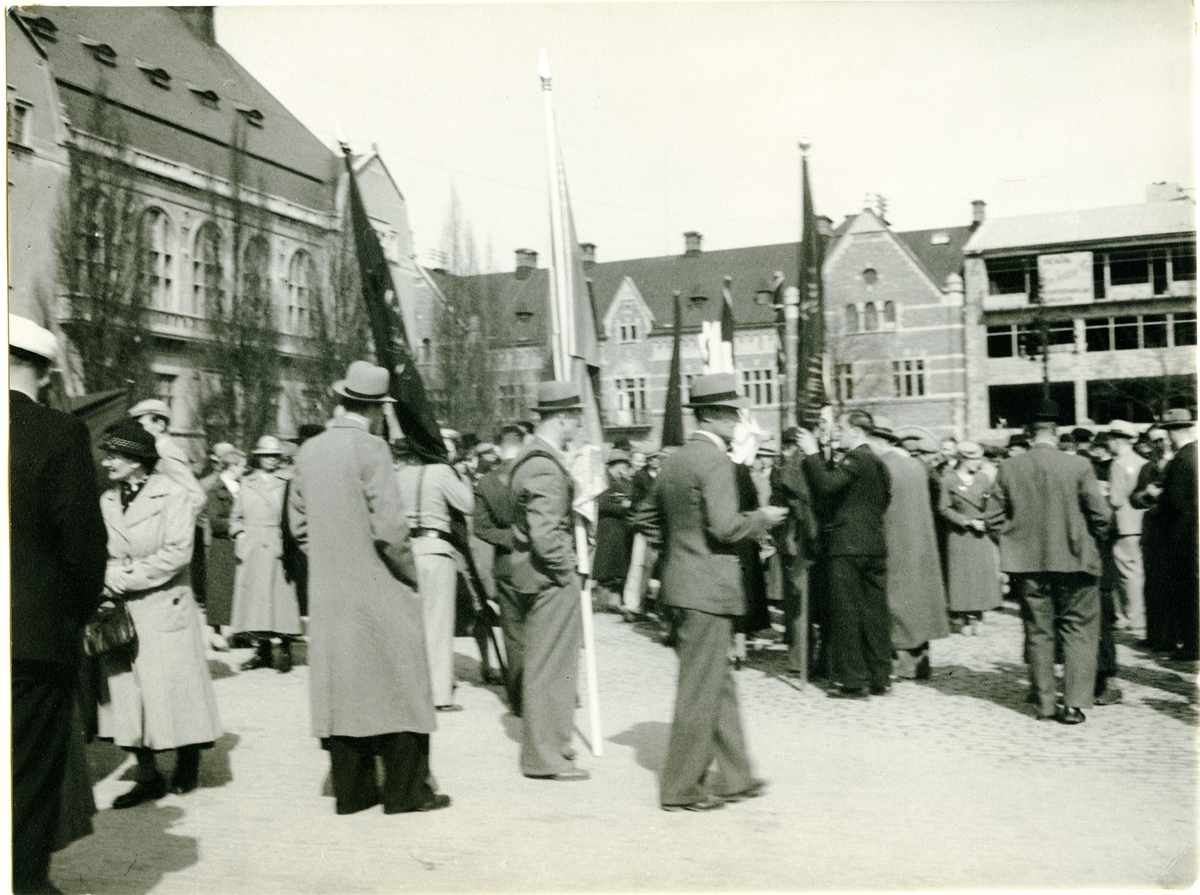Socialdemokraterna samlas till första maj-demonstration, 1937.
