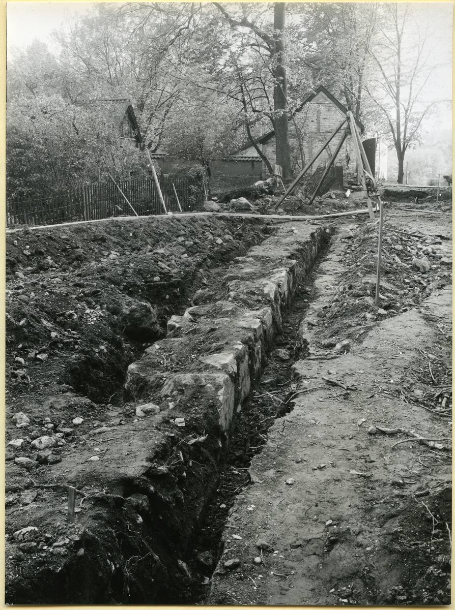 Den medeltida kyrkogårdsmuren utefter Biskopsgatan.