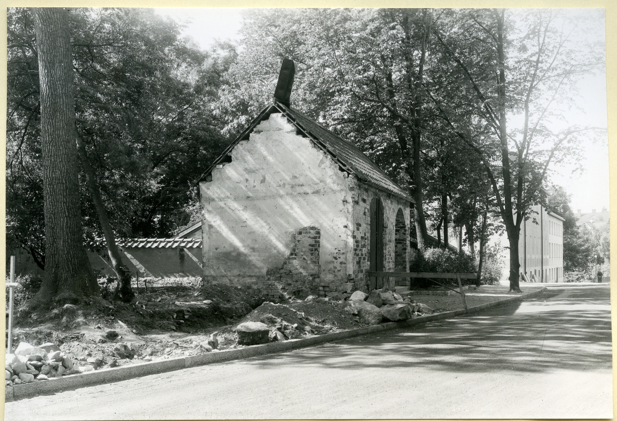Den medeltida kyrkogårdsmuren utefter Biskopsgatan.