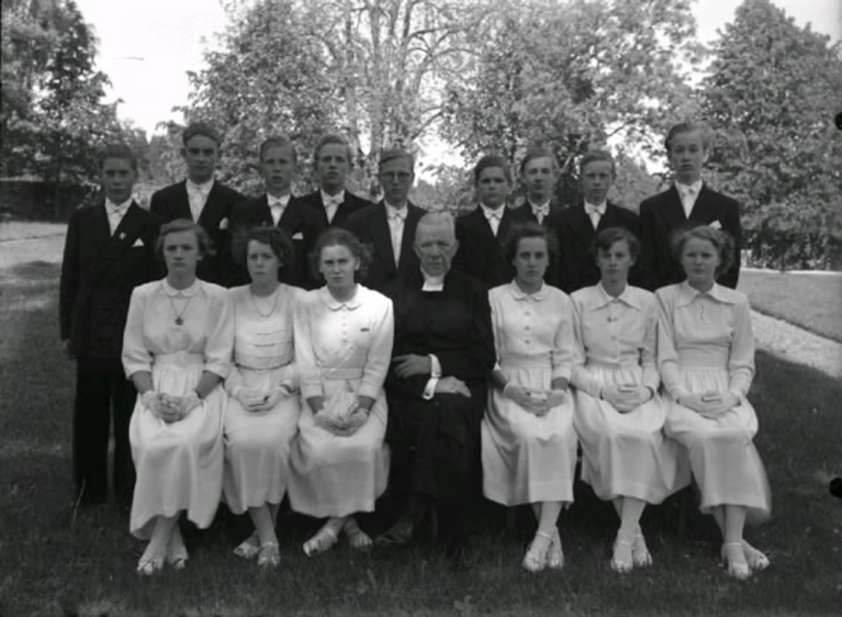 Konfirmandgrupp. Prosten Hagard med 1952 års konfirmander.