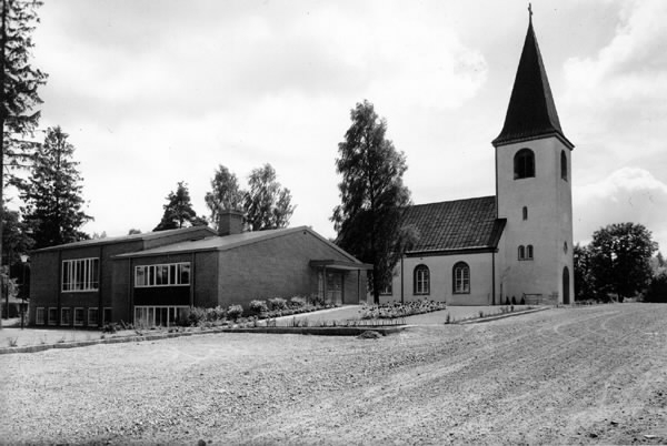 Exteriörbild av Hyltebruks kyrka och församlingshem.