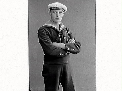 Sjöman. 35 201/23 Andersson troligen en av besättningen på skolfartyget H M Svalan.