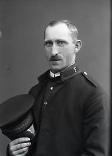 Ateljéfoto i Frälsningsarméns uniform, troligen beställaren själv, Karl Sjöberg, kv Falkenbäck i Varberg.