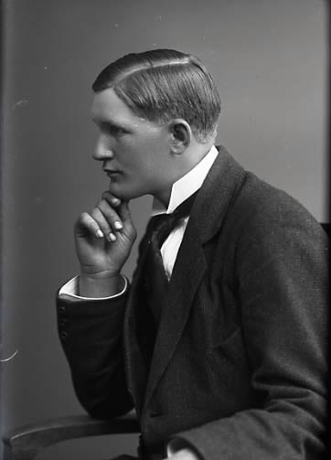 Ateljébild av en ung man, kanske beställaren själv, Birger Lindgren, Lindhult, Långås.