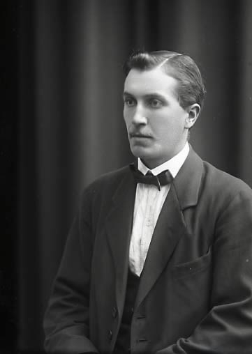 Ateljébild av en sittande man, troligen beställaren själv, Einar Olsson, Nyhem 4, Varberg. (Se även bild nr GB3_14749)