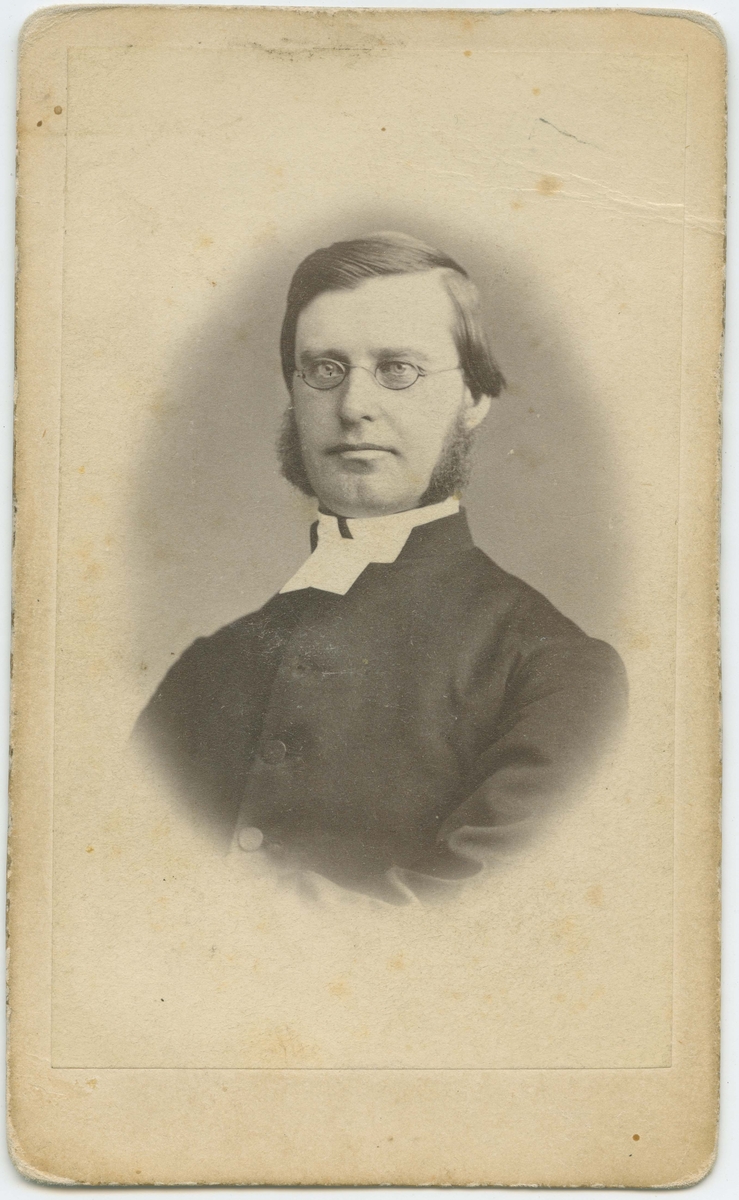 Porträtt på Kyrkoherde Isak Danell. Född år 1833 och död år 1905.