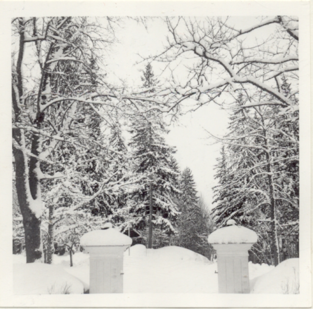 Blackstads kyrka. Foto taget från vapentrappan mot väster före avverkningen i mars 1969.