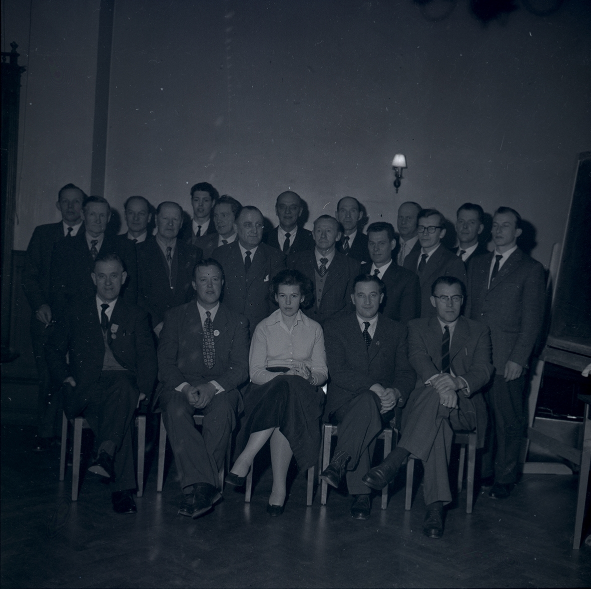 Skytteföreningens årsmöte. Namn som medföljde bild: Ingmar Ekholm. Två män i kostym.