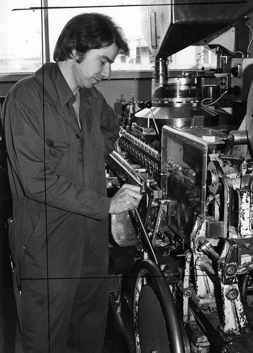 Reparatör vid Arencomaskin, Läkerolpackning. Arne Wahlman.