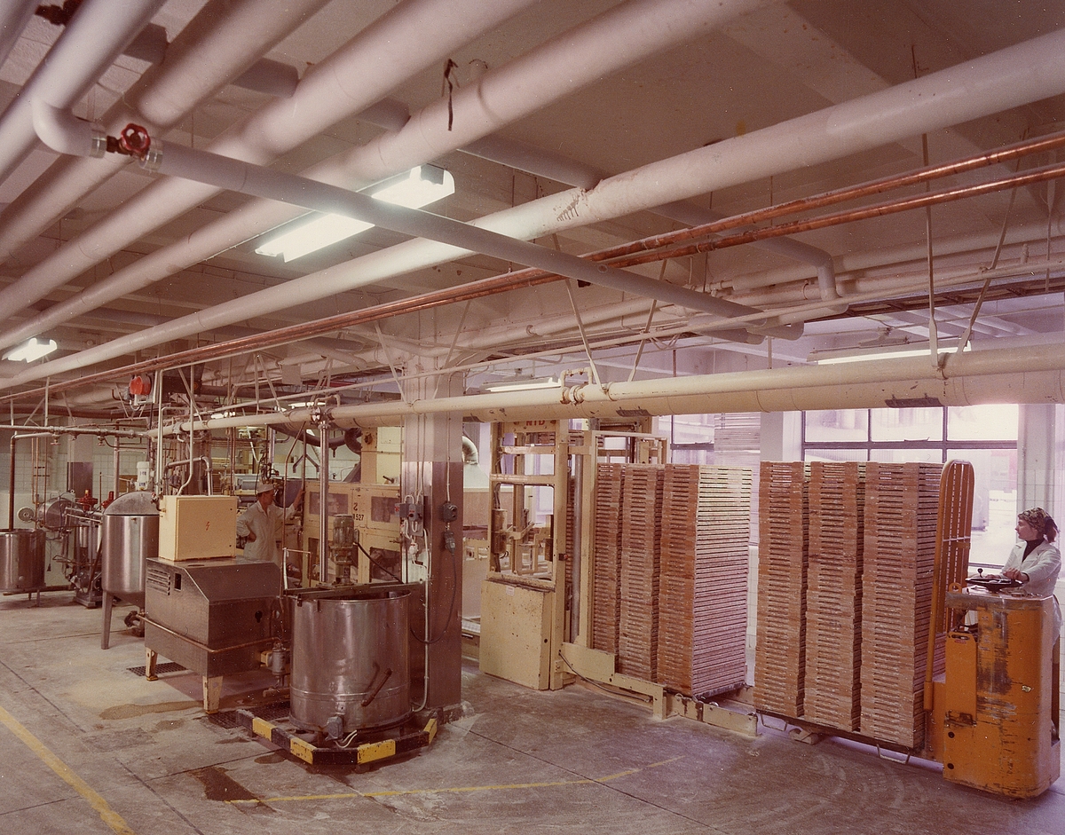 En av de så kallade mogulanläggningarna. Det vill säga gjutning av tabletter och konfektyrprodukter. Inga-Lill Hallenberg.