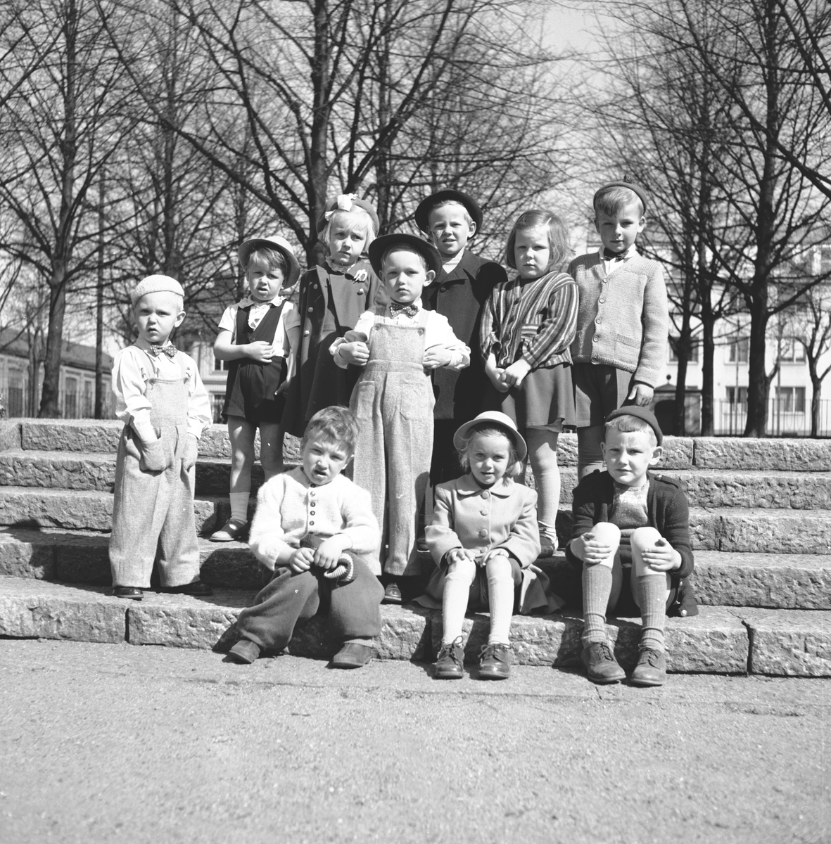 Titel: På väg till Frälsningsarmens barnkoloni i Rörberg. Taget den 10 maj 1950 i Stenebergsparken