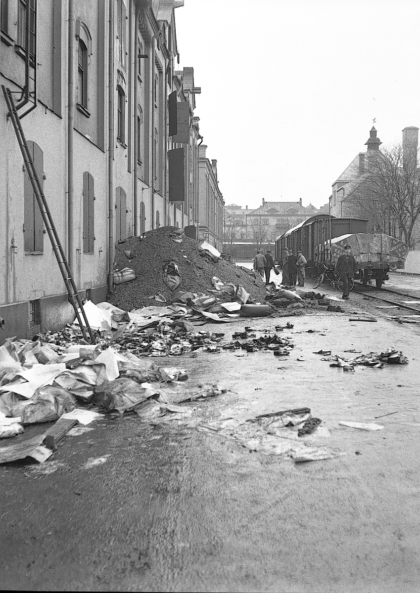 Titel: Brand i Koperativa förbundets lager på Stora Holmen. Den 31 mars 1943