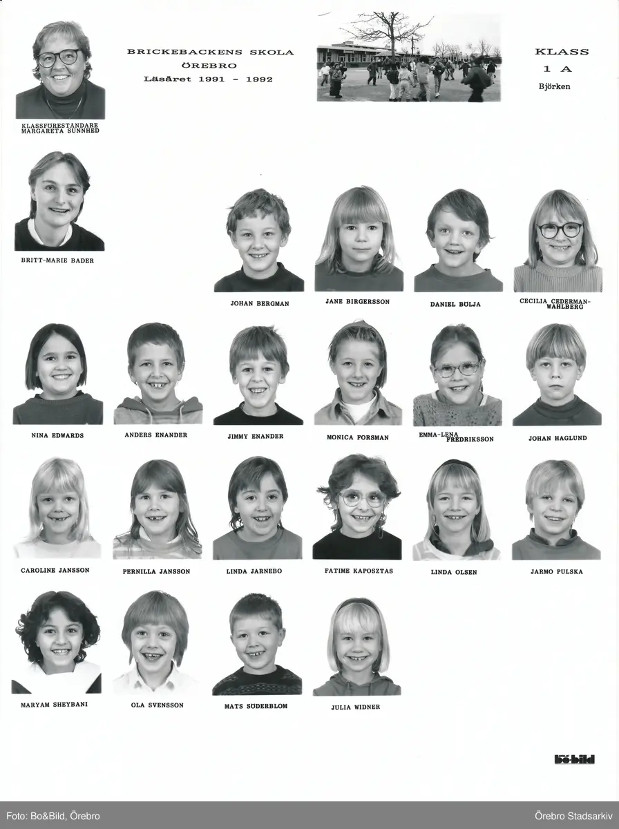 Klass 1A Björken Brickebackens skola, 1991-1992