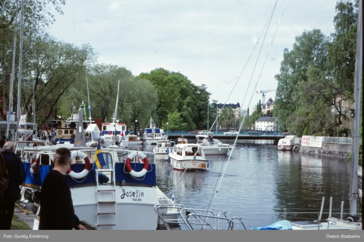 Vy över båtar och besökare i gästhamnen, båtens dag 1999
