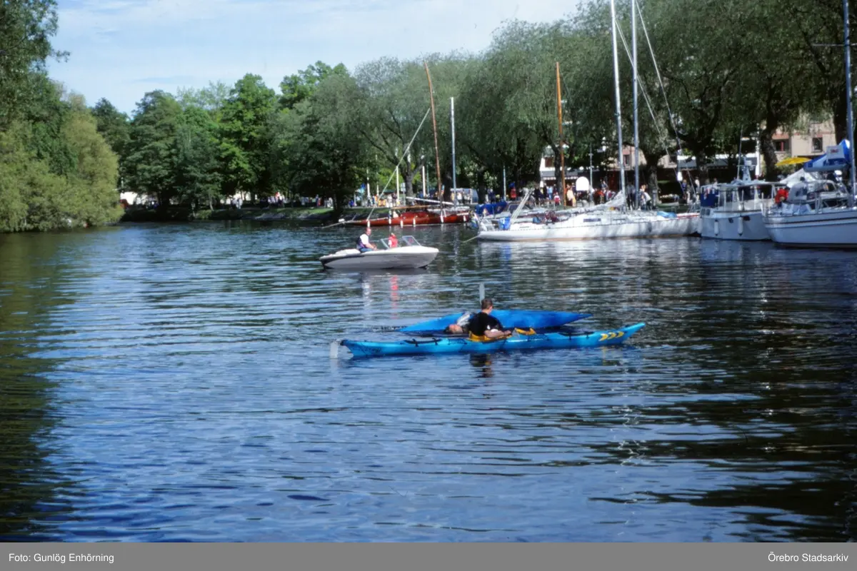 Vy över båtar och kanot i gästhamnen, båtens dag 1999