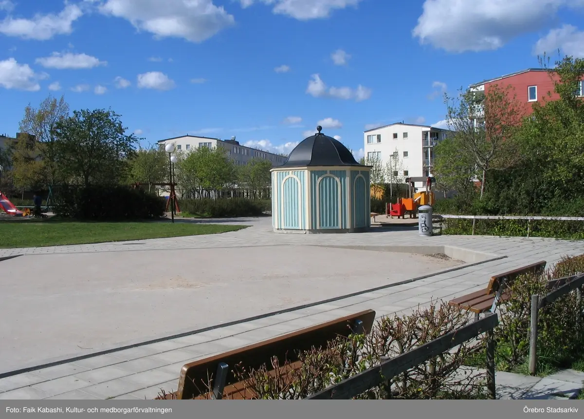 Parkbänkar vid lekplatsen i Markbacken, 2005-05-19