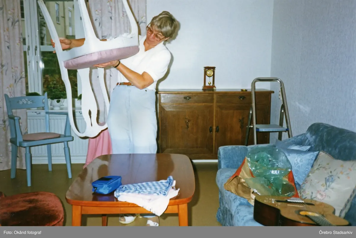 Solveig klär om stolsdynor, 1988