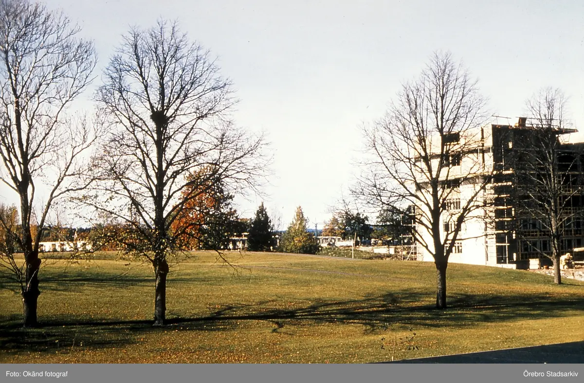 Byggställning runt hyreshus i Västhaga, 1970