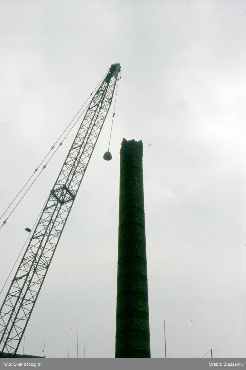 Lyftkran vid skorstenen vid Norlings bryggeri, 1970