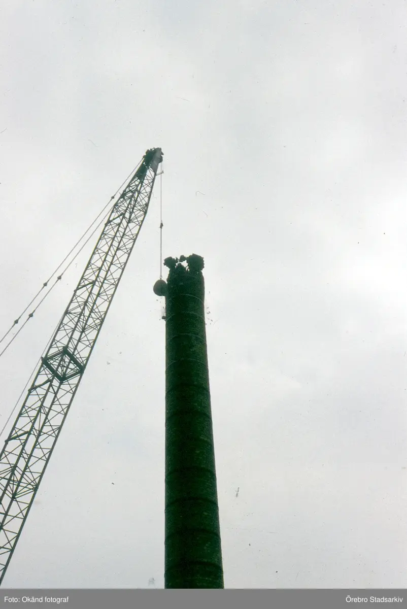 Lyftkran river skorstenen vid Norlings bryggeri, 1970