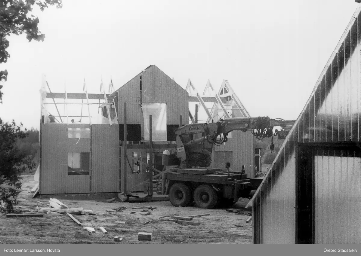 Det nya huset byggs på Yxyabacken i Hovsta, 1981