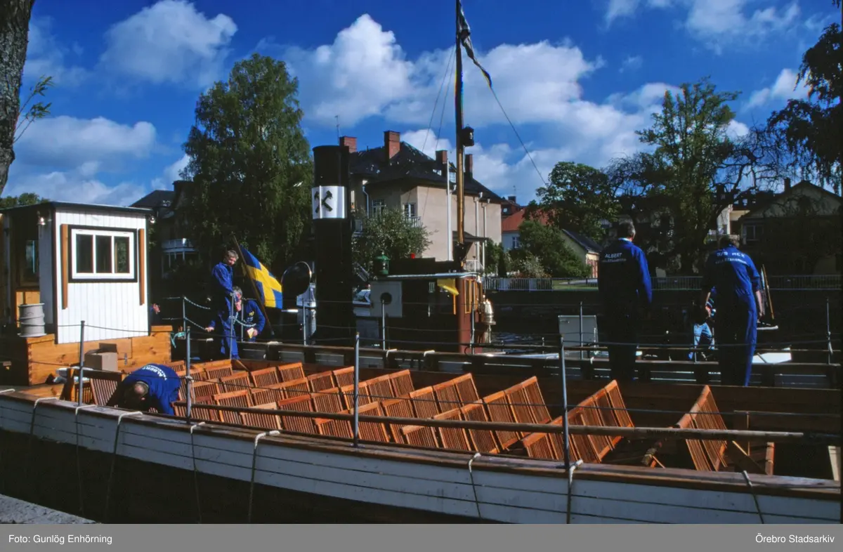 Pråmen Albert förtöjd vid kaj på båtens dag, 1996